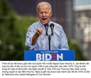 Do đó, khi ông Joe Biden trở thành đối thủ của ông Donald Trump trong lần bầu cử sắp tới, những người Việt nói trên cảm thấy có bổn phận, bằng mọi cách, mọi phương tiện, dù tiểu nhân, bẩn thỉu, bá đạo…phải ngăn chận, gây trở ngại cho ông Biden để trả mối “hận thù” mà họ chịu đựng âm ỉ hơn 45 năm nay, dù nhiều người trong họ, trước đây chưa sinh ra hoặc chẳng biết ông Biden là nhân vật nào trong chính trường Mỹ.