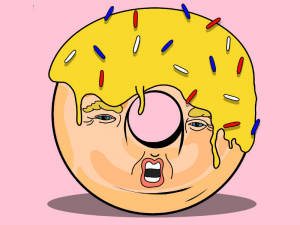 Trump giống như máy làm bánh donut ở nhà hàng của chú Ulysses vì không thể ngừng nói dối, các lời dối trá từ miệng ông ta thoát ra với một tốc độ chóng mặt. Giống như bánh donut có một lỗ hổng ở giữa thì ở đây cũng có một lỗ hổng ở giữa tất cả những gì tổng thống nói.