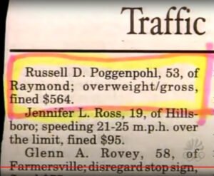 “Russel D. Poggenpohl, 53 (tuổi), ở Raymond, to béo thô tục, phạt $564.”